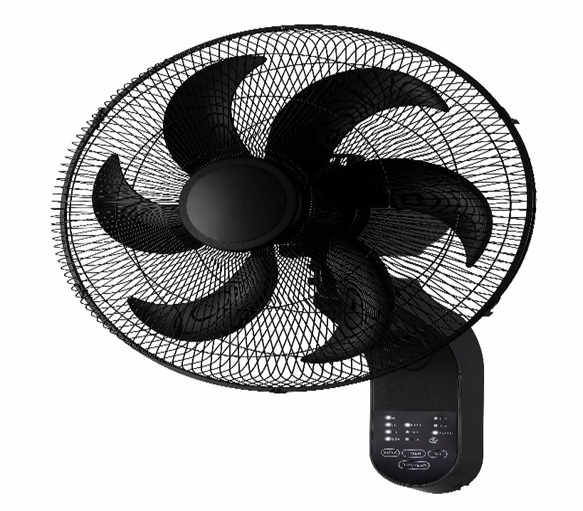 أي دو مروحة حائط مزودة بريموت كنترول – 18 بوصة – 75 واط – 3 سرعات للتحكم في تدفق الهواء ( منخفض – متوسط – مرتفع ) – 220- 240 فولت – 6 شفرات قوية مصنوعه من البلاستيك لتتدفق هواء قوي وأنسيابي – شبكة مزودة بكلبس أمان لسهولة الفك والتركيب والتنظيف — صوت منخفض عند التشغيل ( Super Silent) – مؤقت زمني حتي 4 ساعات – امكانية أمالة رأس المروحة لأعلي ولأسفل للتحكم في أتجاة تتدفق الهواء – شكل عصري وأنيق – تصميم أنسيابي – ذات لون أسود – مزودة بمسامير التعليق والتثبيت